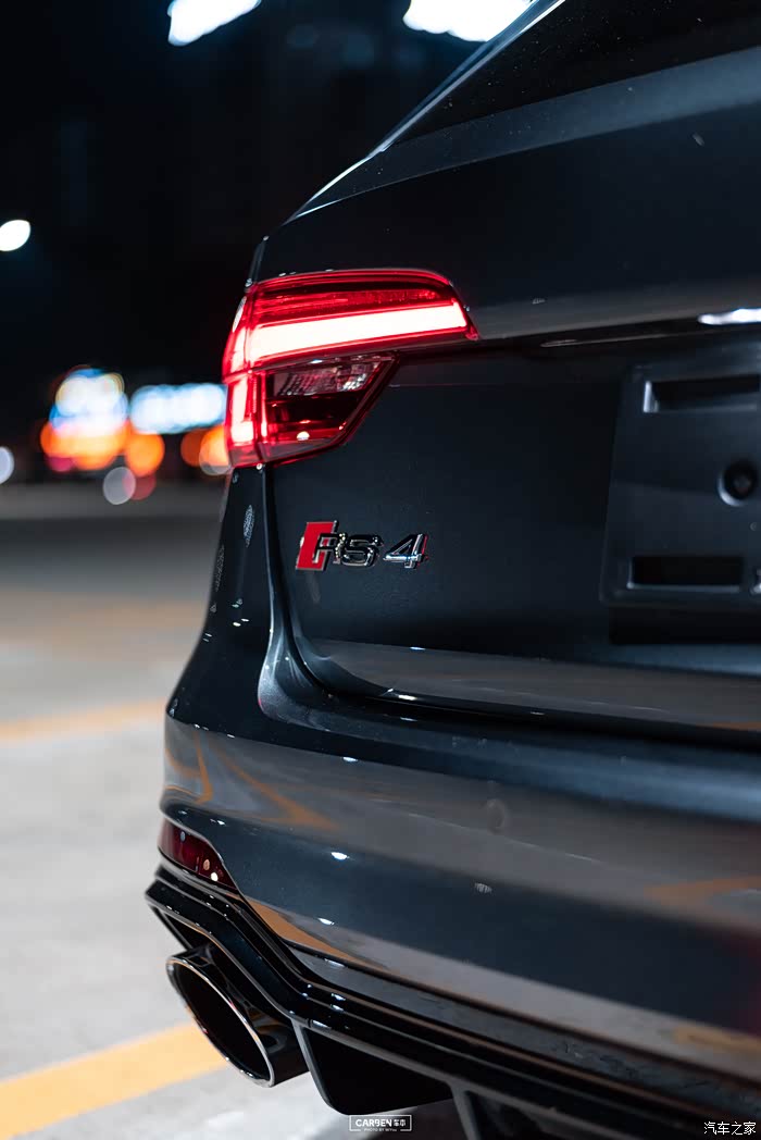 而宽体设计带来的则是车身更扁平的效果,因为原厂这套避震本身就不高,这样的车身总体显得十分趴地。而B9.5的RS4也许比较偷懒,尾部除了更换尾灯、尾门车标下册加上一条连接左右尾灯的饰条外,包围设计都是一致的。由于没选运动排气,镀铬外观的排气口显得有点奇怪,未来更换排气时会换成黑尾嘴。