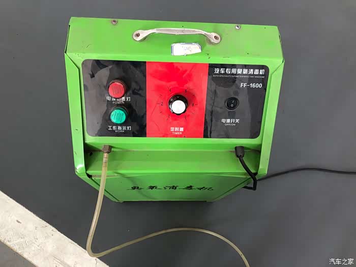 使用臭氧消毒需要注意一点:如果长时间使用臭氧消毒会使车内橡胶老化,而且汽车装饰美容店的臭氧机由于质量良莠不齐,消毒效果不能保证,建议在店里操作,每次时间别超过20分钟。消毒后车内异味消失了,效果还是立竿见影的,这个保养做的很值。