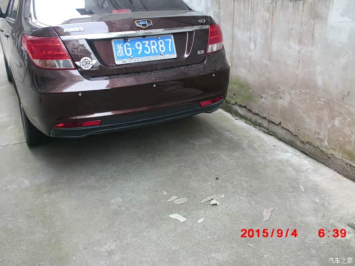 两个月了,小景屁股被邻居启动车子时不小心追尾了。地上的碎片是肇事车前杠的。在一档,不踩离合,启动车子的杰作。