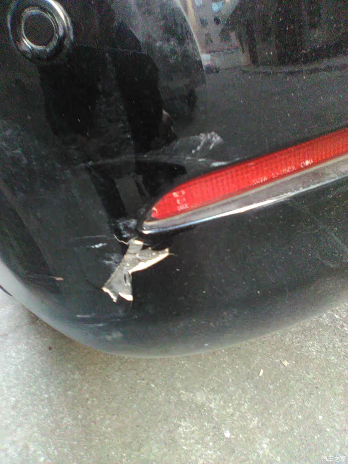 肇事车的屁股真不经撞,居然破相了。看这车有倒车雷达的,难道是装饰品?我也只能呵呵了。