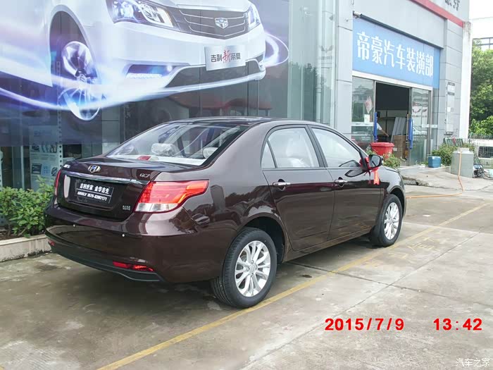 简单说下过程,本人4月份参加金华吉利团购活动定了2015款1.5L手动精英天窗版的云母红吉利新远景一辆,当时没有现钱,到7月9日钱够付全款提车