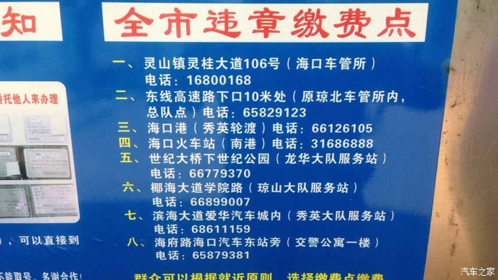 海口各违章处理点电话: