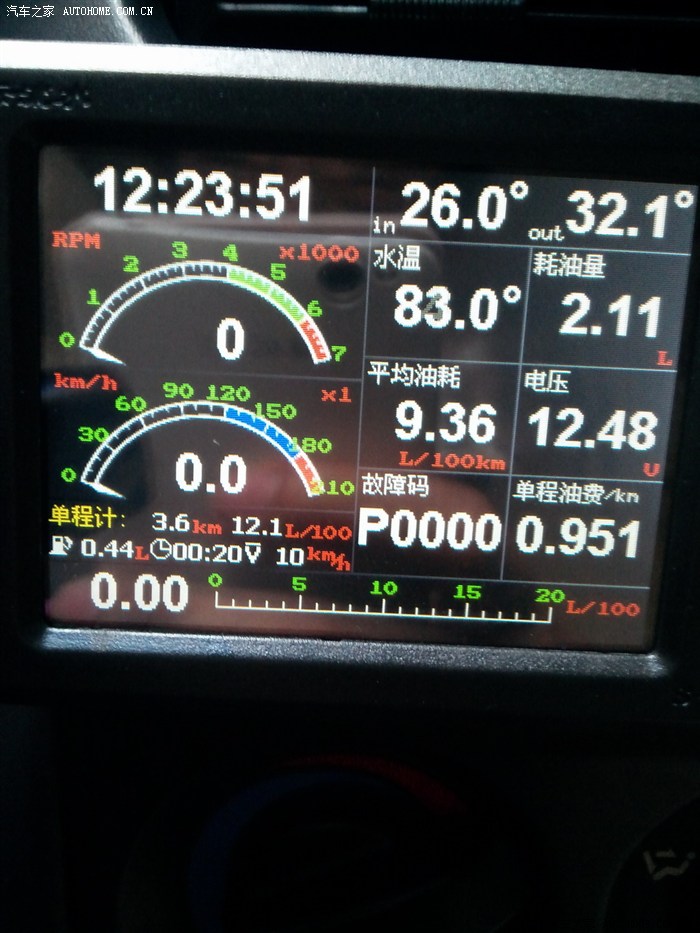 这是完全热车后的喷油脉宽2.3左右,听说正常,有311的车友说下自己的多少吗?这时显示每小时油耗0.33L