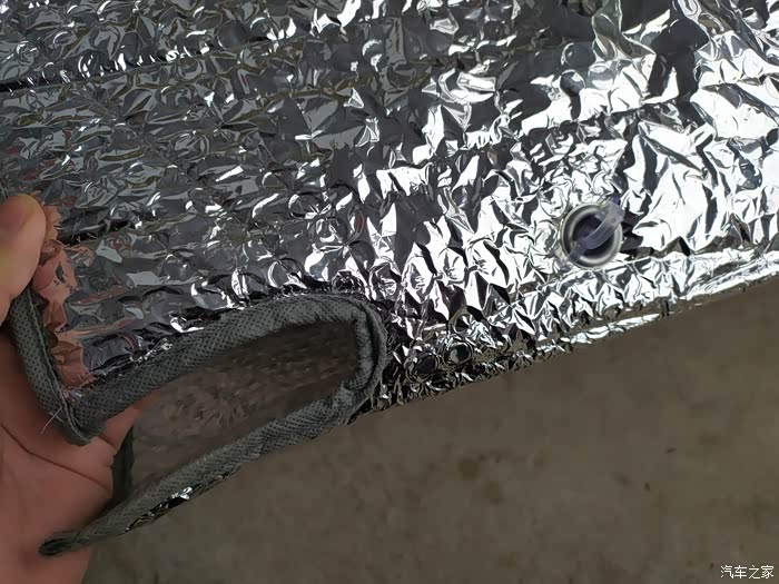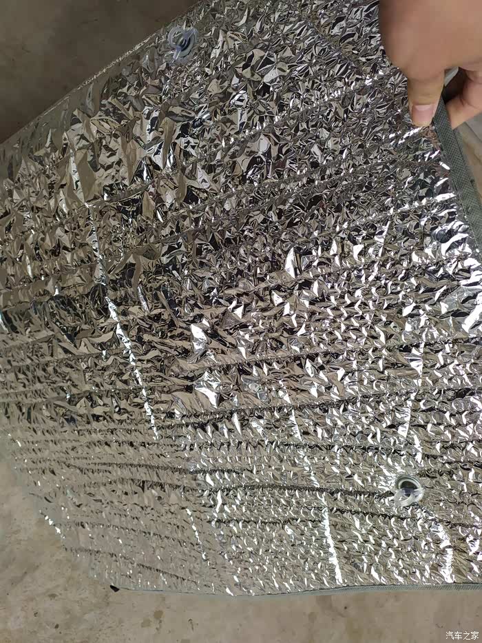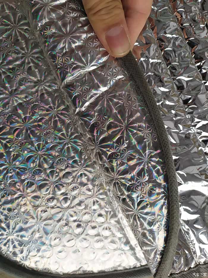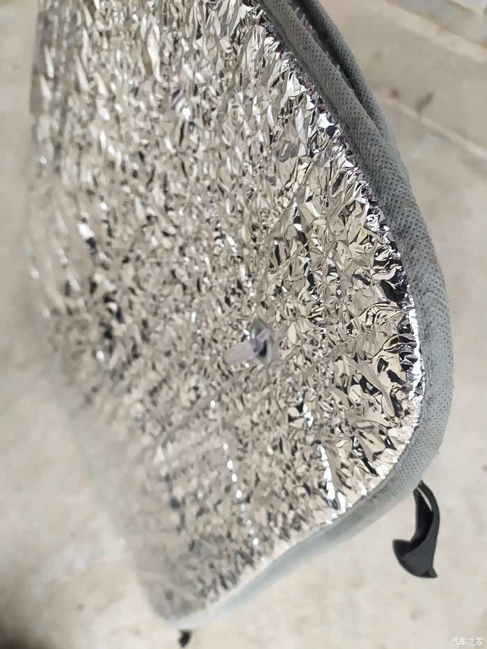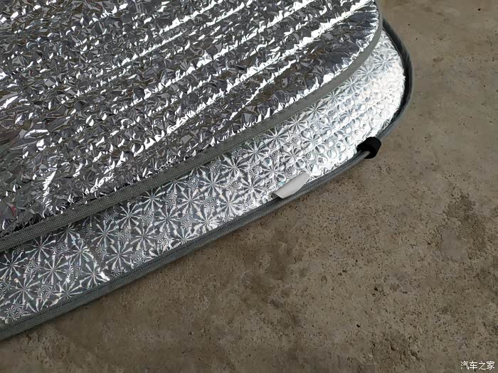 下面就仔细看一下我这件遮阳板吧。遮阳板主要采用了塑料材质,正反面材料和颜色也不相同。正面是带有雪花装的纹理的反光表面,可以非常有效的反射进入车内的阳光,而且外观看上去也非常美观,而车内测,则是使用了比较普通的银白色反光材质。遮阳板四周使用了布料材质进行包边设计,可以有效提高使用寿命,避免遮阳板松脱损坏,遮阳板上带有四处吸盘,可以非常轻松的吧遮阳板固定在前挡风玻璃位置,吸盘位置在遮阳板上打孔,并且遮阳板在后视镜位置设计有避位,也是非常细节人性化的设计。遮阳板,总之车品值得推荐。