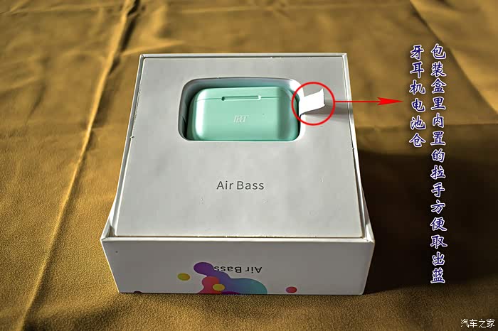 包装盒内部电池仓的凹槽里有一个拉手,方便取出蓝牙耳机,这个设计很人性化,很贴心。