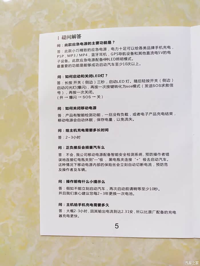 说明书做的很详细,用5V2A充电器充满主机只要2-3小时。在满电状态下,可以启动汽车十次以上,而且自带正负极接反自动切断电流功能,防止危及爱车及操作者的生命财产安全。铜线夹做的还是很讲究的,特别喜欢那根数据线,居然有三个接口。
