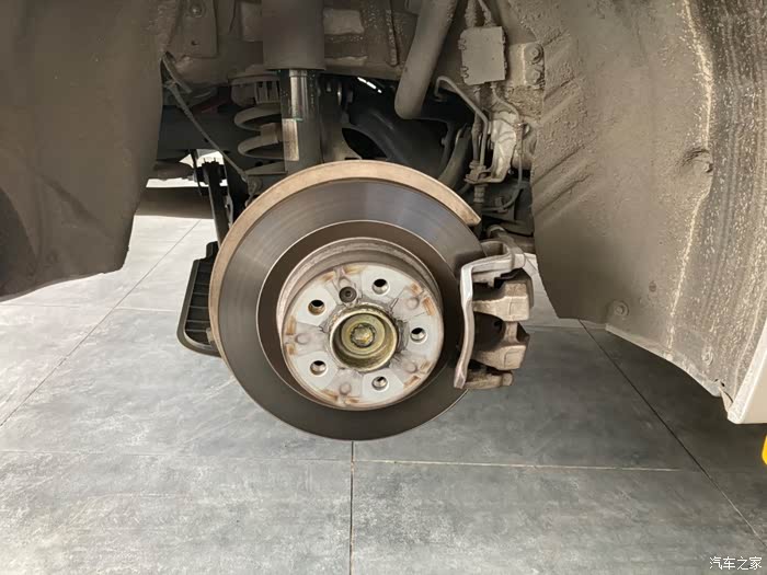 手脚很利索,一下子就卸下来了。看盘,行驶了1.7w公里,磨损还是有的。