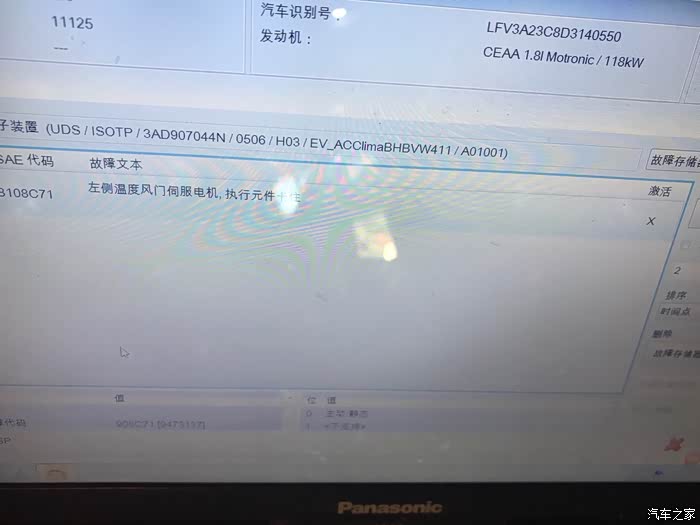 早晨发现暖风,左边两个出风口出凉风, 右边两个是热的,结果一查悲催了。故障码显示伺服电机故障 。