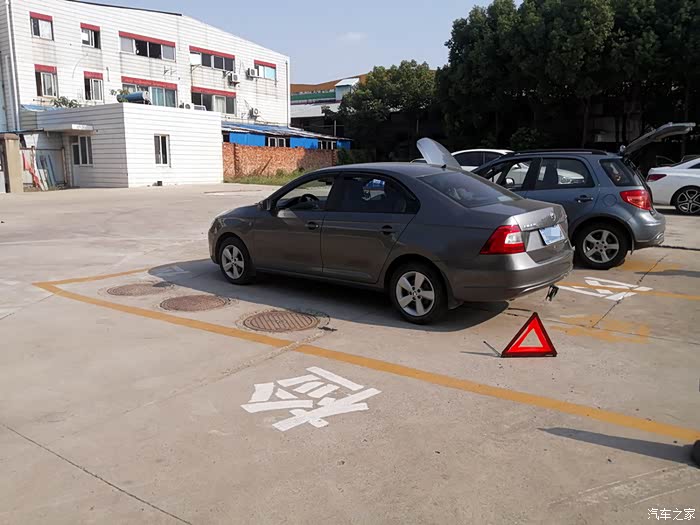 停车按照要求摆放警示三脚架。检查发动机舱。