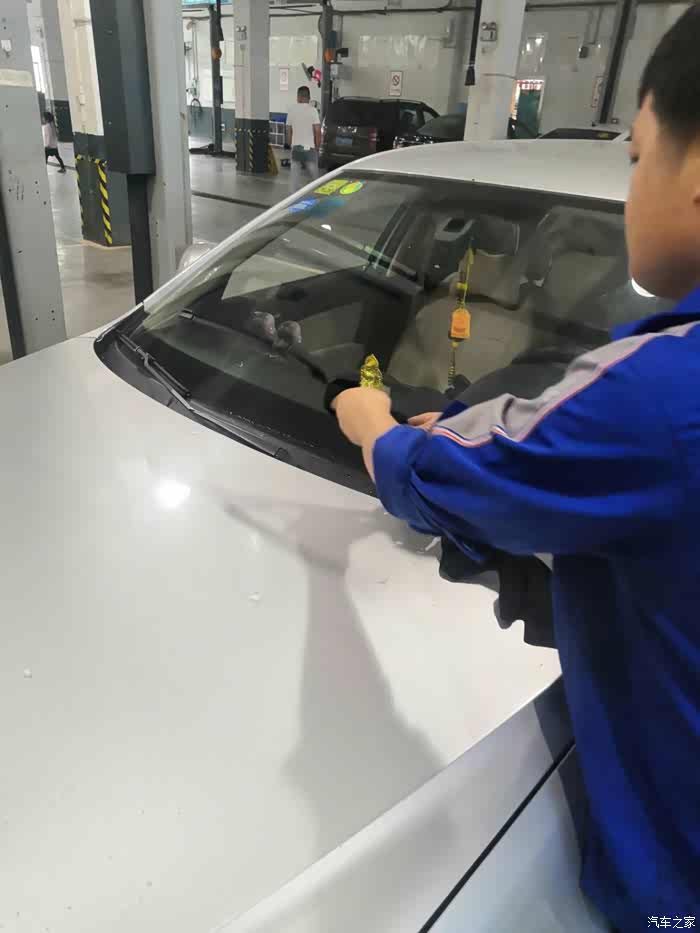 把老朗放下来后,师傅开始检查雨刮器及胶条。