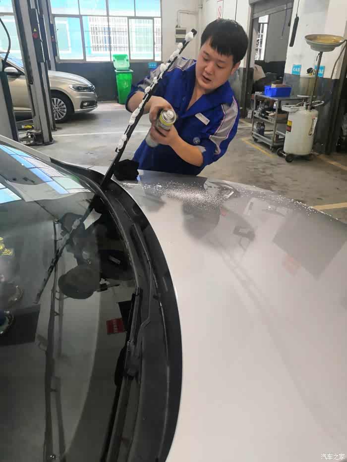 一个小时过去,还是没有一点动静,于是到展厅转转,看看即将上市的途观X到店没有,转一圈回来,发现老朗的检查已经开始,赶紧跑到车间去学知识。跑到车间,维修师傅对发动机舱的检查已经接近尾声,只剩下对线路的检查了。