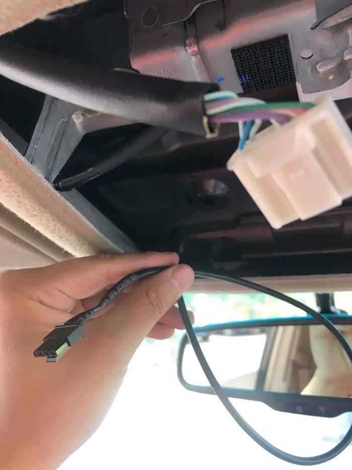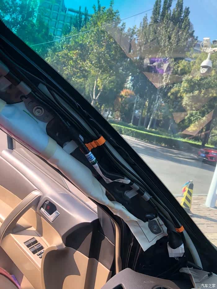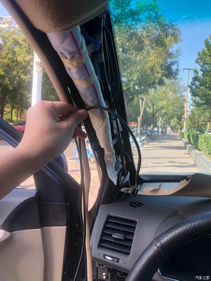 顺着前挡风的位置走线,与之前的雷达后视镜显示线一起。