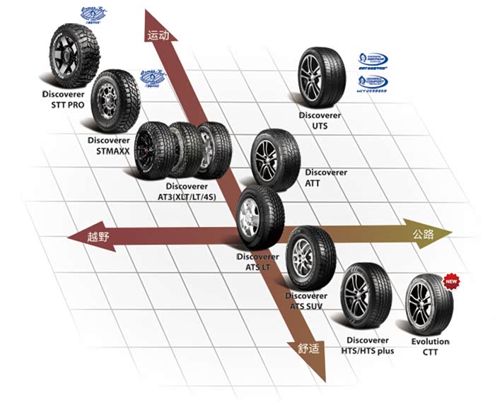 固铂官网上的图,一开始也有考虑ATS胎,好像固铂工程师给出的是这样的说法:ATS胎是从越野胎向公路胎进化的型号,而ATT胎是从公路胎进化向越野胎的型号。其实都无所谓,主要是ATT胎是新出的型号,觉得新胎型肯定是有一些更可取的地方的。