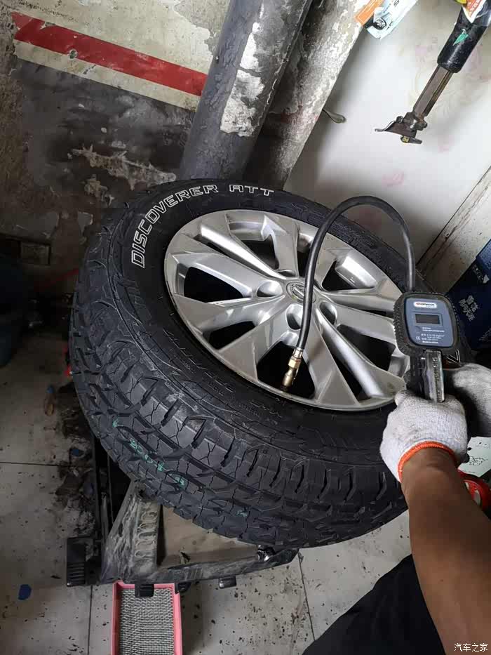 轮胎店的小哥在帮忙换胎,可以看见胎壁上还有一点花纹,看着很野性。换胎的时候我对比了一下跟原厂胎的重量,这个ATT胎大概要有一个半绿歌伴原厂胎重,簧下质量重了这些,油耗肯定要涨的,就看涨多少了。