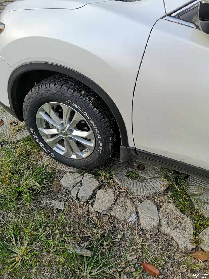 后轮角度,可以看出来这个花纹还是很粗犷的,配上奇骏圆鼓鼓的外突肌肉感车身,个人觉得很搭。