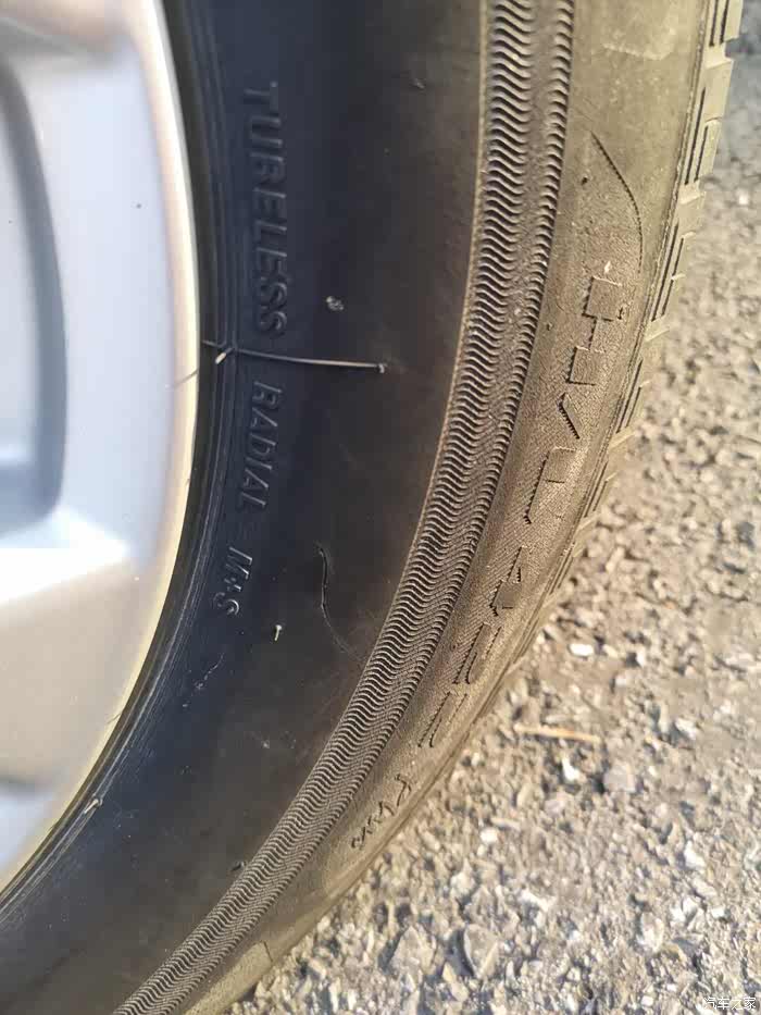 按理说开到六万左右才该开始考虑换胎的事,但五月底出了次小事故,左侧非机动车道上一辆车上道时给它刮擦了,理赔时没太注意轮胎,直到从4S店出来后才发现轮胎胎壁上划了两道小口子,看着有点深。