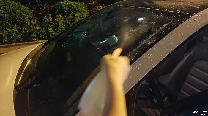 出发前我全程在喷玻璃水,把原车自己配的玻璃水放光,不好用,除不掉油膜的三无产品。换能擦油膜的。