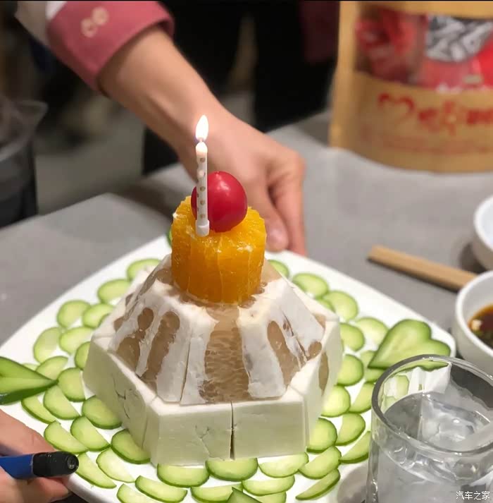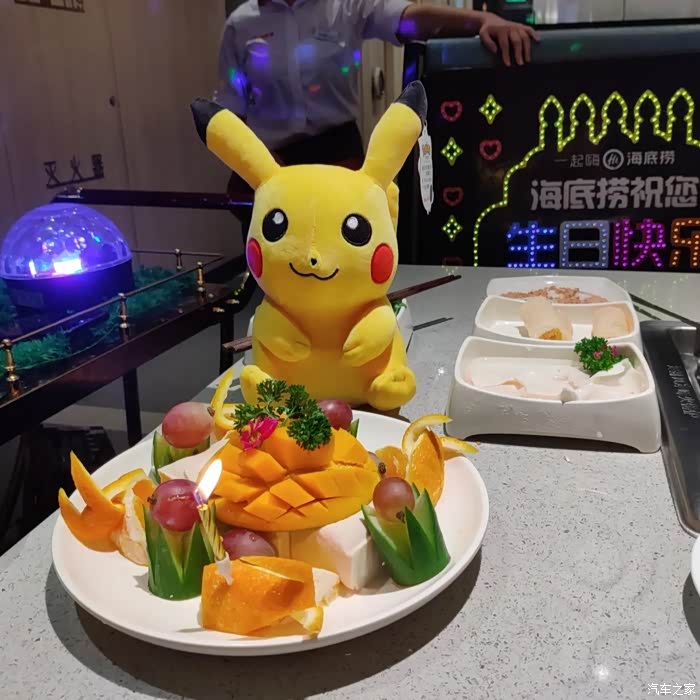 生日餐车和举牌让我们身处异地一样可以感受到家的温馨。