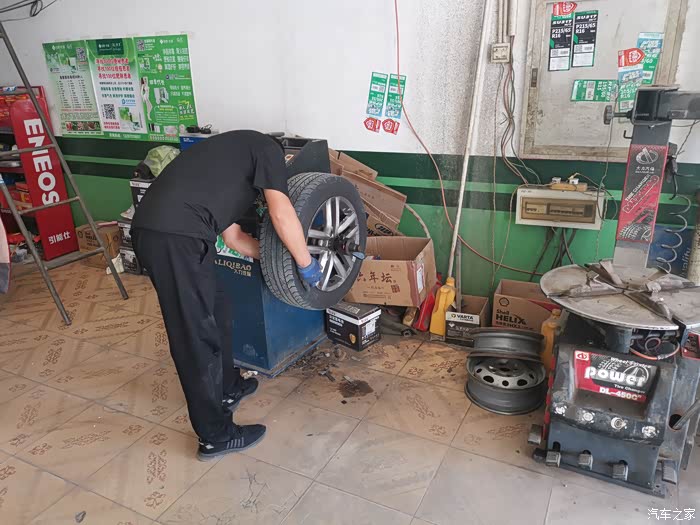 老板做动平衡,老板娘上轮胎,两不耽误,效率。
