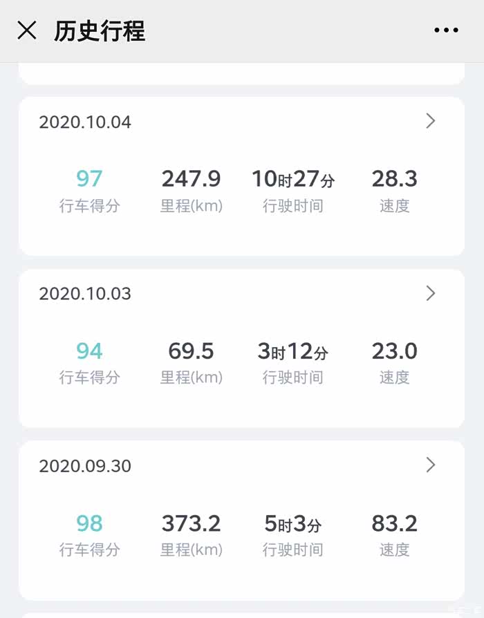9月30号提前请假,早上赶早在8点钟上了高速,稍微错峰出行,跑373公里,用时5小时。10月3号跑69.5公里,用时3小时12分。10月4号248公里,用了10个半小时……手动捂脸.jpg。。。身边的亲朋好友,9月30号傍晚到10月1号早晨出发的,跑十几个小时才到目的地的比比皆是。