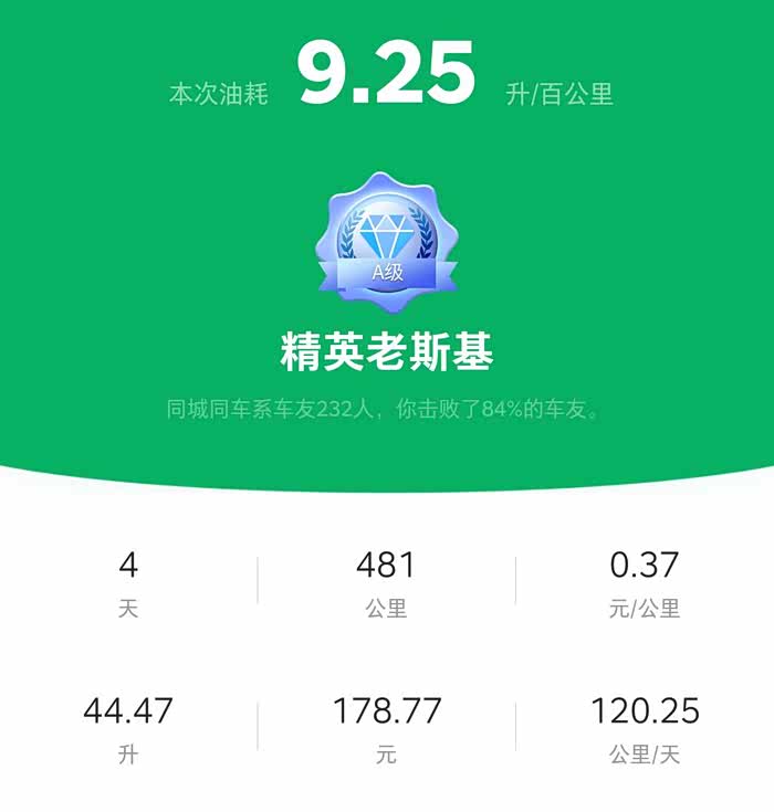 长假第三次加油实测油耗