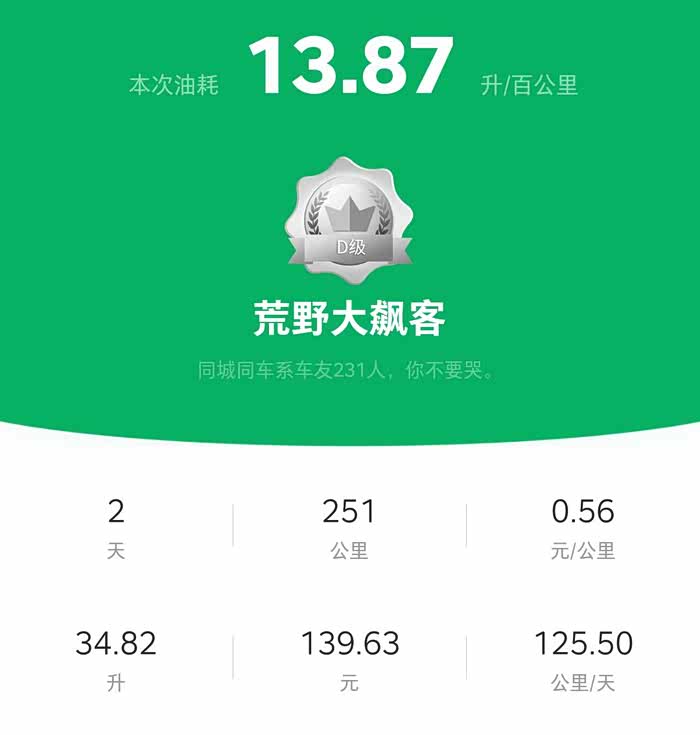 这次加油时表显总里程34587公里,上次加油之后跑了251公里,加了34.82升跳枪,油耗13.87升/百公里,这油耗对于七座满载、环岛跑山路、长时间低速找车位、长时间堵车的用车场景来讲,再正常不过了!得益于低油价,一公里竟然只需0.56元,真香真香。哈哈哈。。