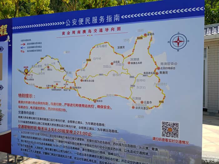 停车处后面不远就是这个黄金周期间交通导向图,进岛和出岛的路线都改成单行道了,看来今晚出岛必堵无疑