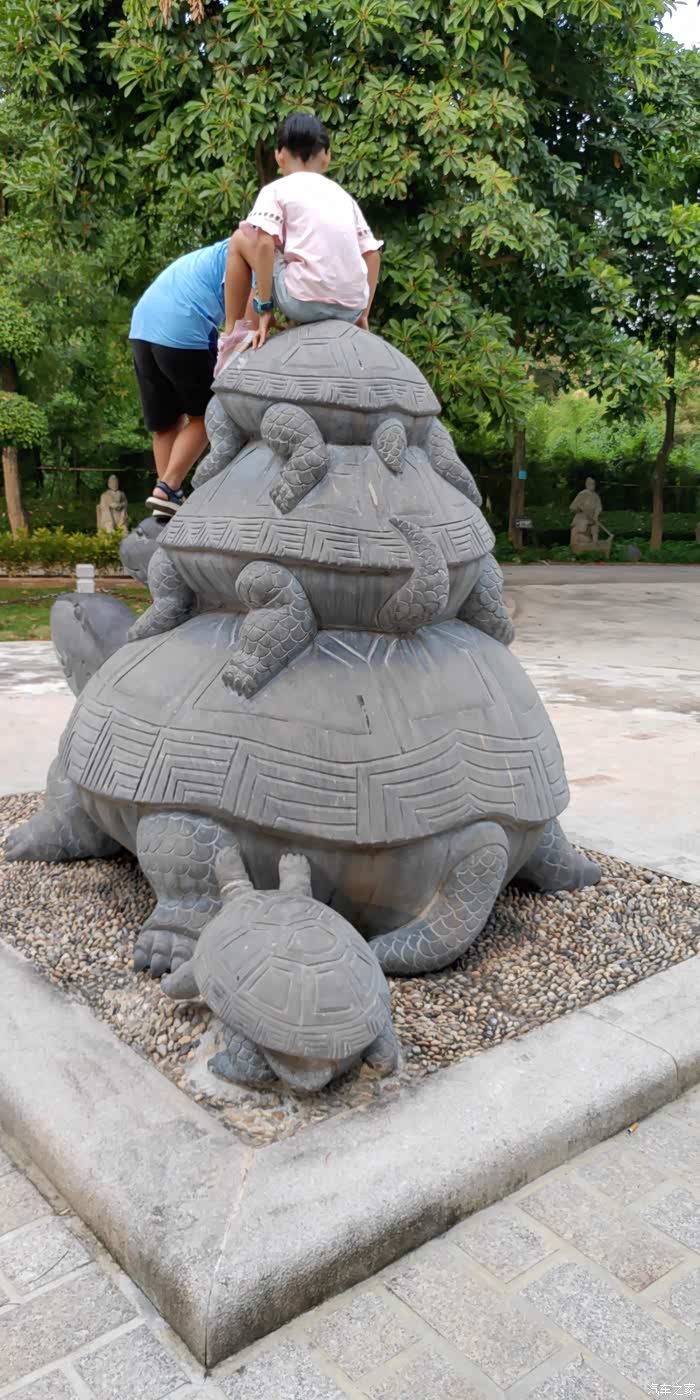 爬上石龟背上去拍照……危险动作,切勿模仿