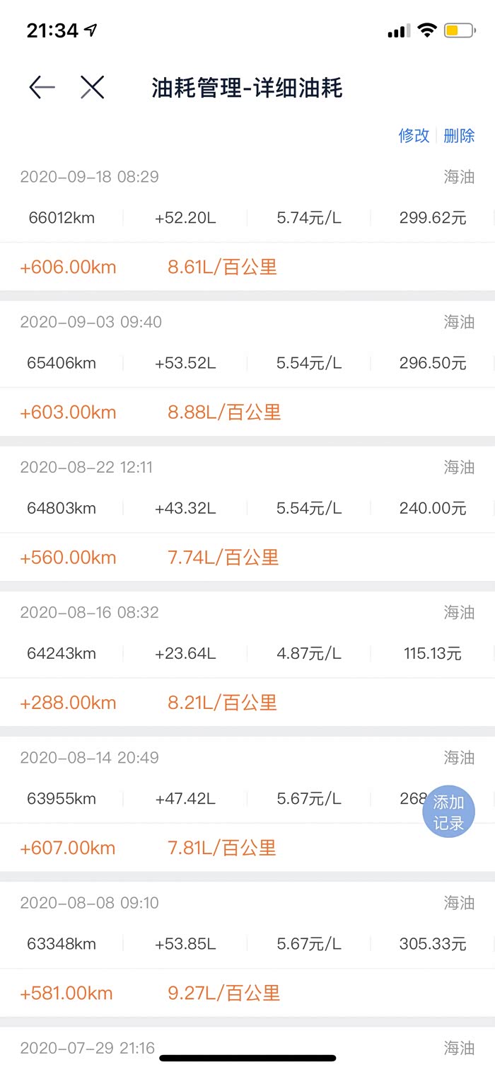 很多车友觉得我这个油耗不太符合一款SUV的特质,但8.73的实际平均油耗却是既定事实,本人有一个比较好的习惯那就是每次加完油都会使用软件记录加油量、价格、单价等信息,来随时了解爱车的油耗情况。