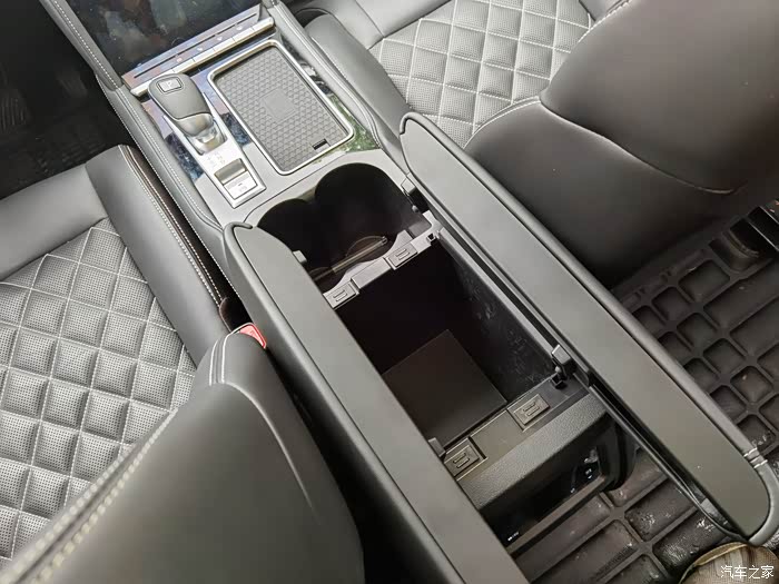后排座椅中间靠背位置有一个可以收缩的杯子支架,很方便