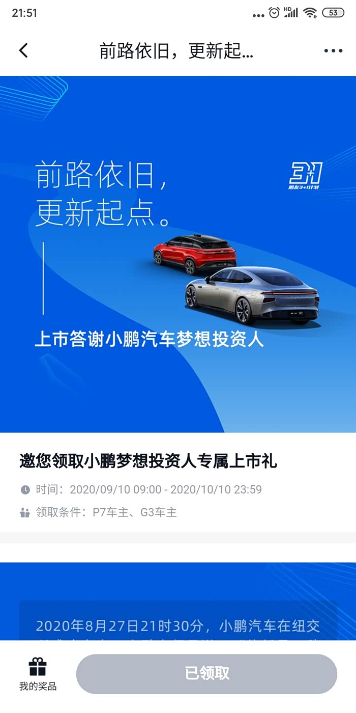 这是小鹏上市送车主的礼品。