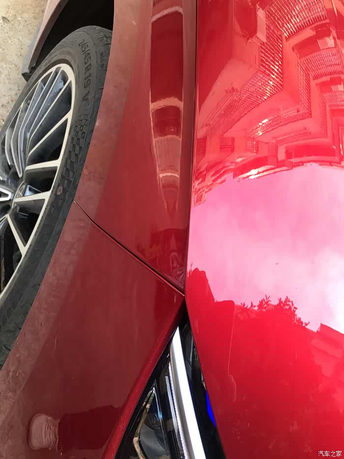 外观细节,提车回家仔细看了看,发现个小问题,车头机盖左右不对称,右边稍微多出一小块,左边就很平整,不知道能不能调整。