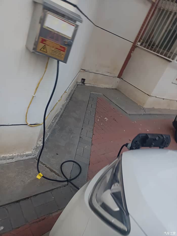最后给大家说一下充电充电的话,之前我是在快充的充电站,但是那边收费比较高,并且还需要等时间,于是我从家里自己接了一伙一零,然后从楼道里面的地线引出来了一根三根,然后连接到一个三项的插座,然后再淘宝上买一个箱子,把这个箱子定在了室外的墙上,这样的话,我每天下班回来把车停在那儿,一晚上的话,可以把电给充满!