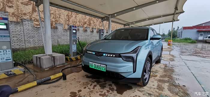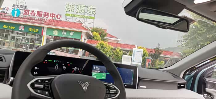 本想着跑到灵丘服务区充电来着,结果一进来,被告知国家电网临时检修断电,别无他法,只能硬着头皮到下一个服务区-----王庄堡服务区,去试试运气。35公里的路程,因为一路上坡,加之雨天,电耗明显偏大,原本续航74公里,跑到王庄堡服务区还剩24公里,消耗掉50公里续航,还是挺让人心疼的。