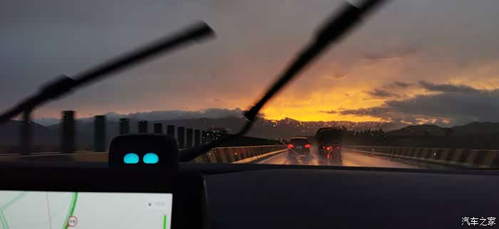 突然路遇暴雨,所有车辆都靠路侧缓缓而行,雨刷器都不够使唤了似的。车子明显感觉阻力加大,前车激起来的水花似乎也要把车冲击得一晃一晃的。当时真是怕一下子趴窝了,都做好了赶紧下高速进城区的准备。还好,最终有惊无险。