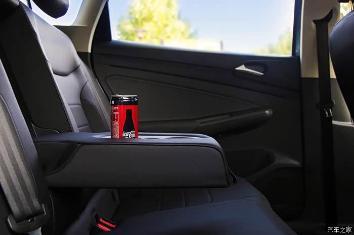 后排座椅中间还有个扶手杯槽,可以用来放女儿的快乐肥宅水(偶尔给她喝)。