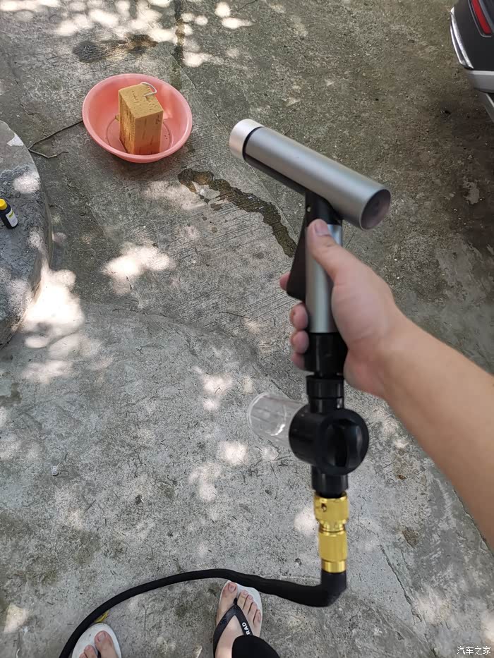 水枪、洗车海绵、盆。