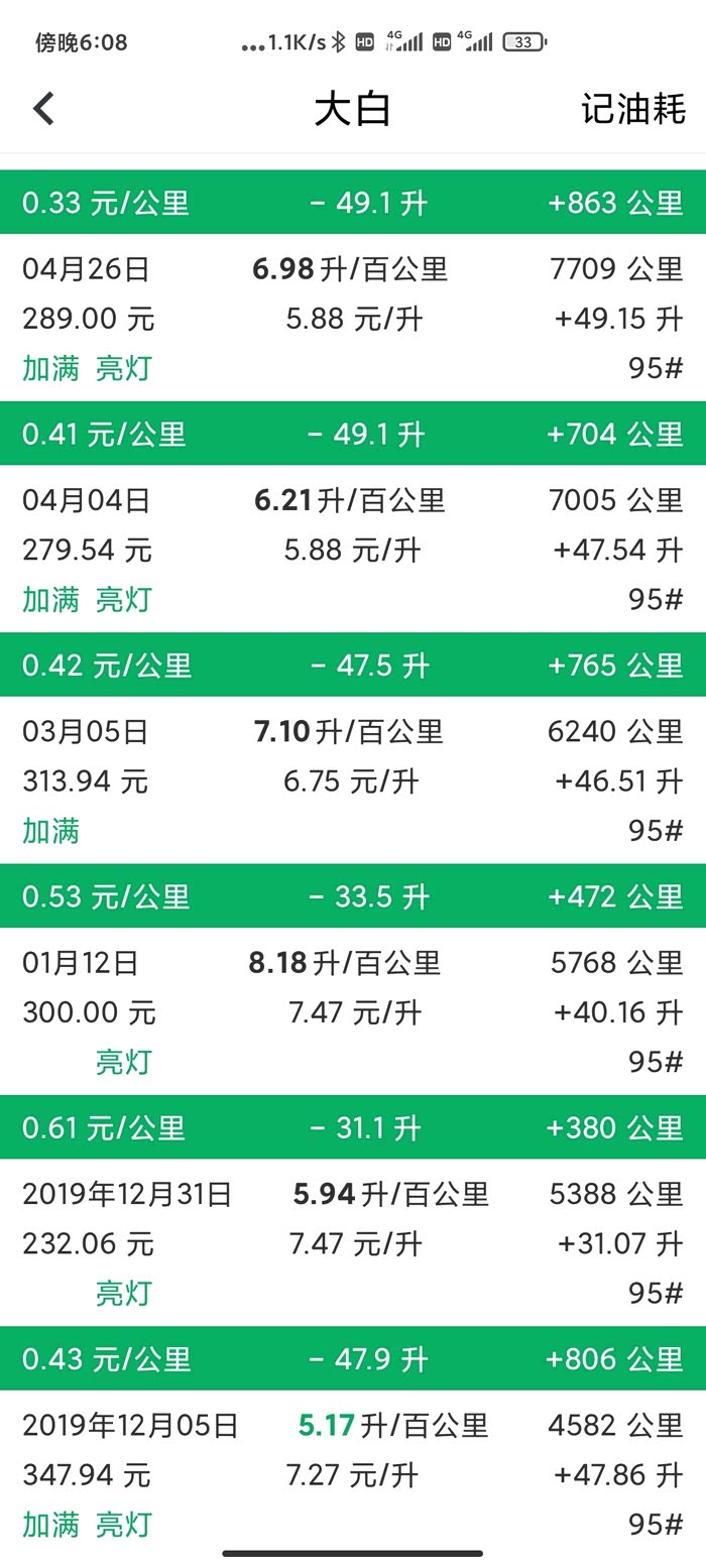 这个阶段我每天早上11-12km纯市区路段,正常红绿灯,定义为不堵车,晚上下班纯市区路段,有3-4个堵点,所以这个阶段油耗在7个多左右,当然该开空调开空调正常使用。