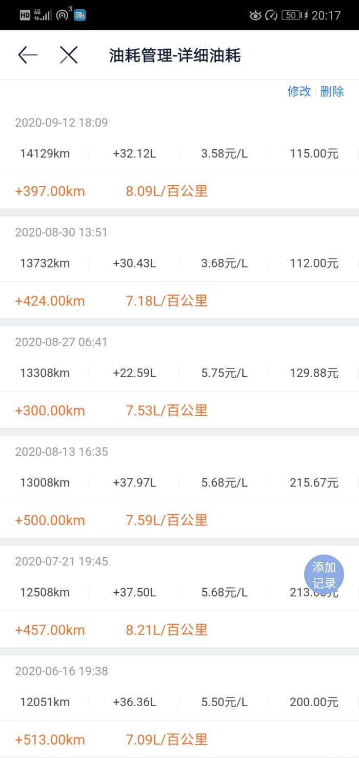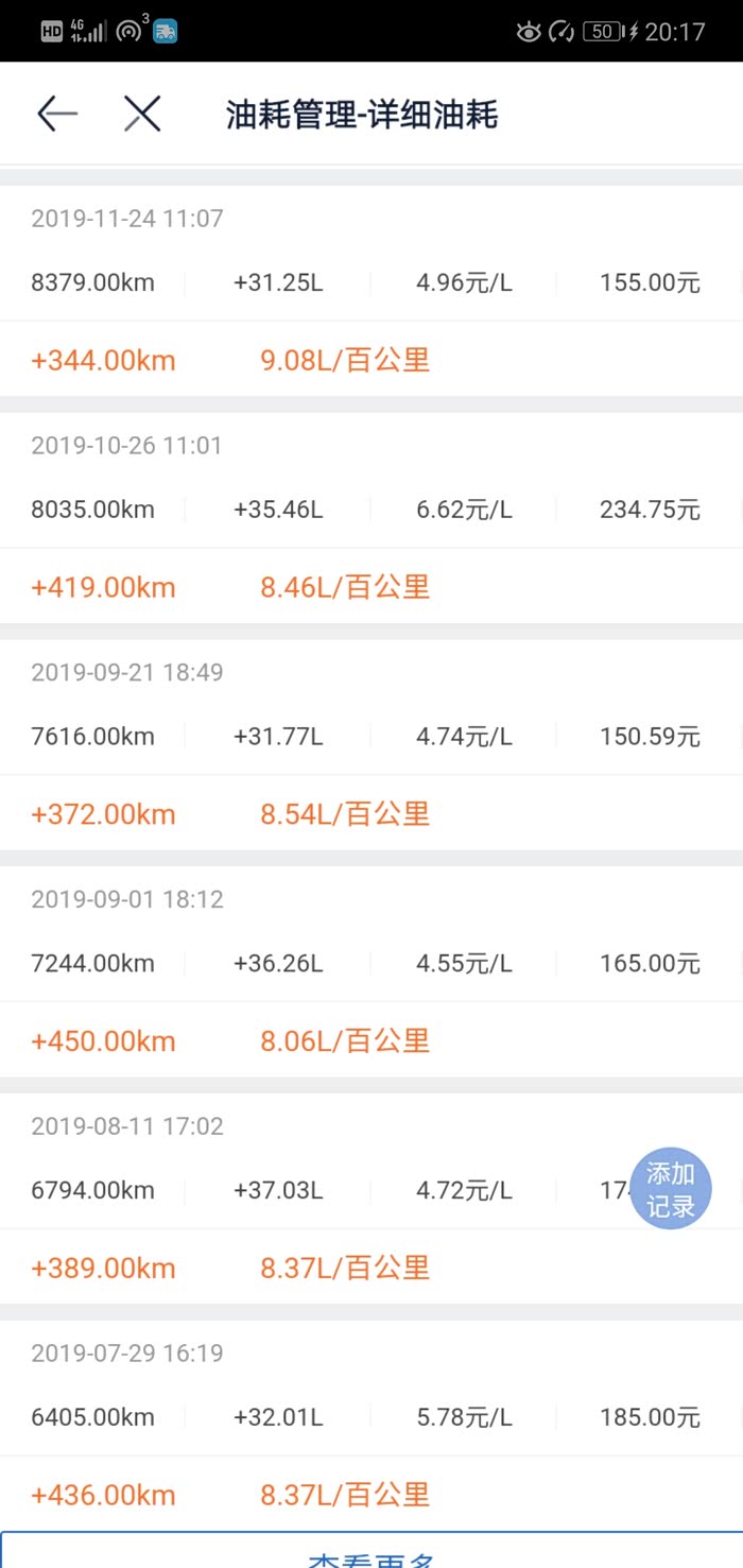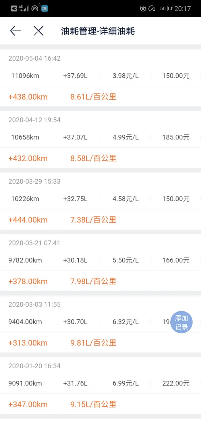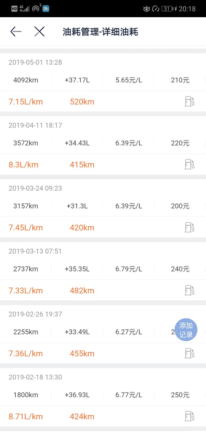 首先我先和大家说一下我的驾驶路段,我主要是在城乡之间的道路上行驶,每次行驶路程,单程在30公里左右,车速一般都是在50码以上,有时候能够达到100多公里每小时,所以在这样的路况上,车辆也能够跑开,那么每次的单程油耗也就是在6个左右,有时候5个多,但是整体下来,平均油耗在8个左右,按照现在的油价来算,油价每升5块多,所以算下来一公里也就是不到5毛钱。然后平时加油的时候,我都在汽车之家有所记录,这些记录都是通过真是的数据算出来的,也是非常可靠真实的。