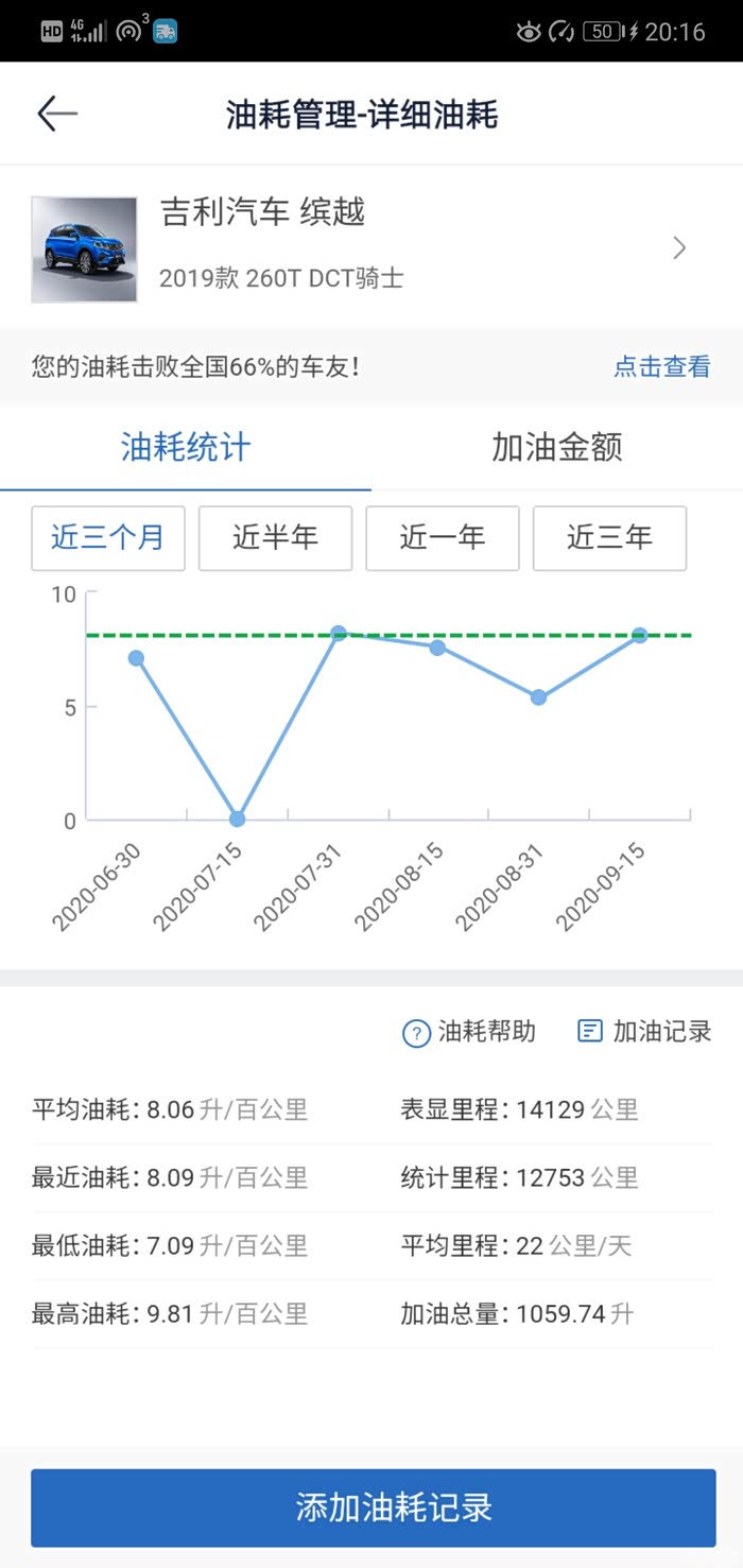 今天我主要想谈一谈关于骑士这款车型的真实油耗,首先我这个油耗是在汽车之家记录的,从我提车以来,一直到目前为止,行驶了将近15000多公里,每次加油的时候都会在汽车之家这个APP里边记录行驶的公里数,加油的金额以及油价等等,通过这些信息能够准确的算出我们的每公里的油钱及平均油耗,所以接下来我会用一些真实的数据来给大家分享一下关于我的车辆油耗。