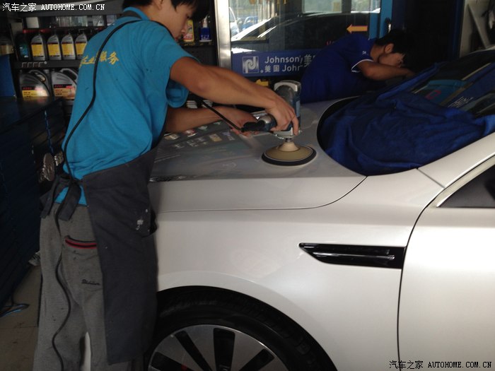 因为之前也镀膜、封釉过,漆面保持的还不错,省去很多麻烦,所以工作人员麻利的开始贴胶布、洗车、打修复蜡,开搞