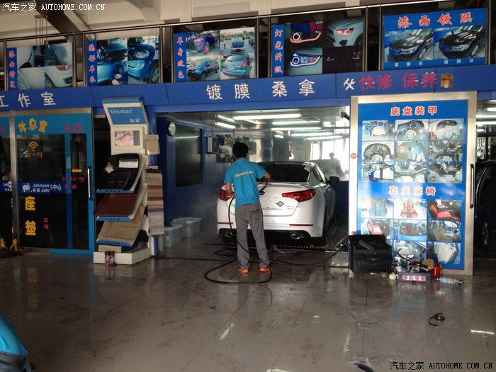 反正年检过去了,该恢复小5的青春活力了,所以先把基础打好还是很有必要的,SO,那就去镀个膜吧,当做补偿了。之后赶紧在汽车之家的服务站里选离我最近的店,然后本着一贯原则,选了N多人选的商家之后一大早就奔过去了,7点半商家还没开门呢我到了居然只排第二个,看来热情的群众还是很猛的