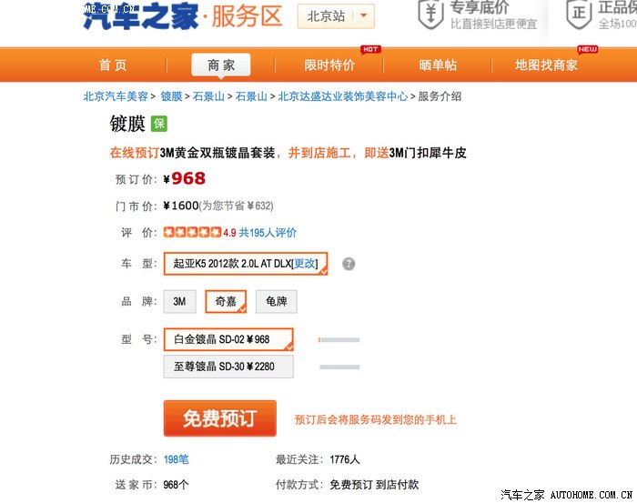 反正到的也早,后来跟工作人员闲聊,本来是打算随便镀个普通的膜就行,结果发现有搞活动的好东东,啥也不说了,直接升级吧,就是下面这货,奇嘉白金镀晶,网上报价968