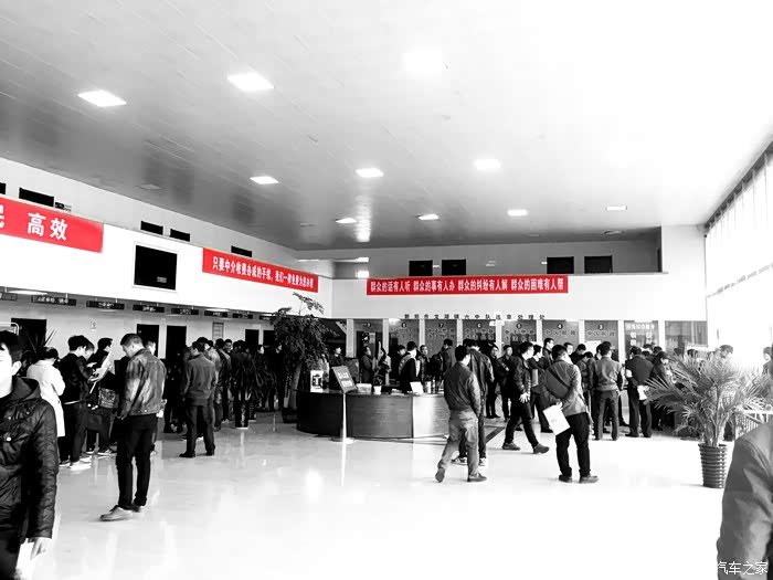 这个过程我并没有浪费太多时间,因为看不到太多的人和车,所以内心还没开始焦虑。车辆排队通道中会有穿着技工服的人维持秩序,开始我看有制服,因为他们是工作人员。而后来才明白他们不是车管所的人,而是世贸汽车城的人,看似在维持秩序引导咨询,实际上是在招揽代办业务。他们的口头报价是“300元+上午办完”,的确比4S店划算很多,但是没有验证不知道是否可信。(我个人感觉少受点罪是肯定的,但是上午办完确实未必)
