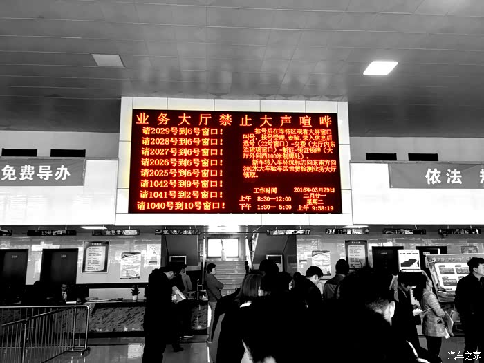 等候两证一牌的制作用了整整一个半小时,因此错过了在车管所安装牌照的机会,5点就下班。