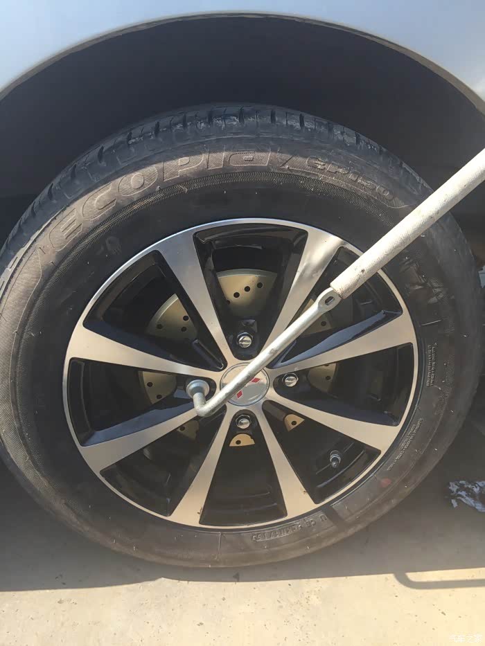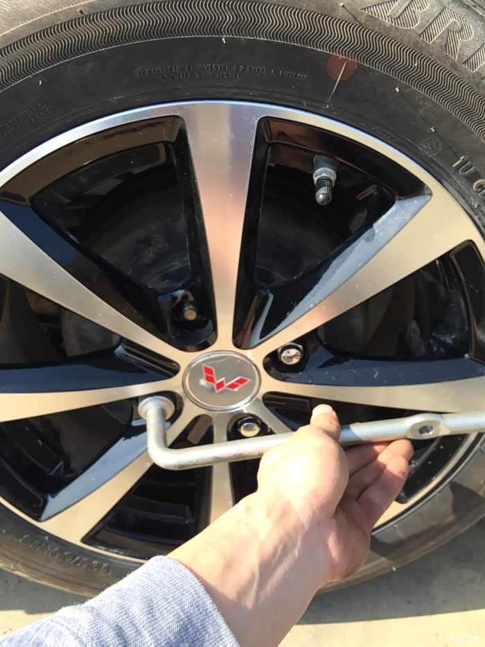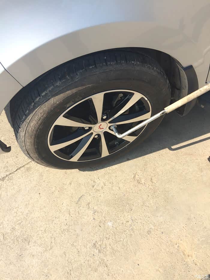 这个车主在换轮胎,他的扳手烂了,借的的用不合适,还好我锋范的扳手带车上拿去扭刚合适,我也是后来才发现宏光的扳手跟小车的不一样的。