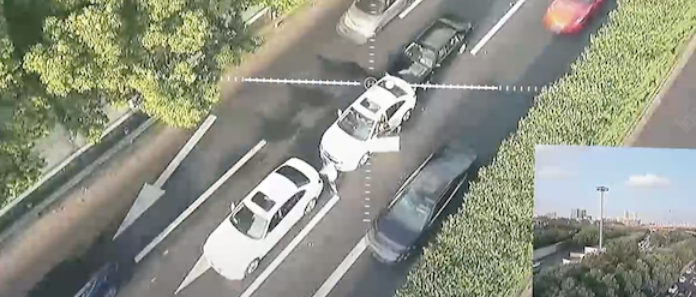 闵行交警勤务路设大队副大队长周易泽表示:“驾驶员没有撤离并且站在车道上面,情况比较危险,过往的车辆从两侧绕行极易引发二次事故,所以通过无人机的画面,我们放大了车牌,通过后台联系了车主,告诉车主抓紧撤离现场。”