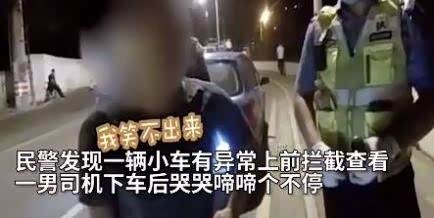 6月3日,江苏南京雨花台区,交警在进行交通违法整治行动时发现一辆小车有异常。民警上前拦截查看,一男司机下车后哭哭啼啼个不停。经过酒精测试检测,未达到酒驾标准。