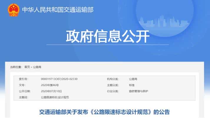 交通运输部近期发布了《公路限速标志设计规范》公告,将进一步规范全国限速标志设计,自2020年11月1日起施行。大量不合理的限速标志将会面临拆除。