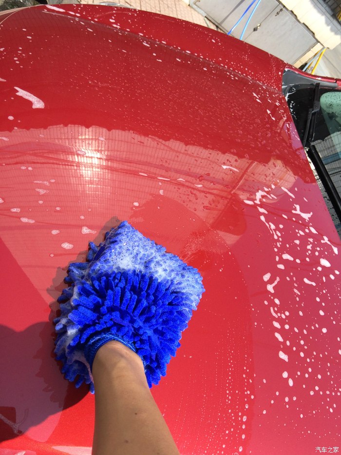 接下来晒一下我的洗车过程,因为太阳比较大,洒水一下就干了,洗车后泡沫、污渍也很快干掉,所以整个过程不是特别顺畅。总体来说我觉得自己洗车,还是划算的,效果也不错。